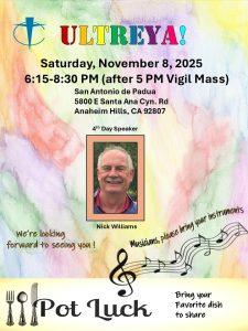 « All Events This event has passed. San Antonio De Padua Ultreya November 8 @ 6:15 pm « Tri-Parish Ultreya (St. Angela Merici, St. Joseph, St. Martin De Porres) Tamale Dinner Fundraiser » Add to calendar Google Calendar iCalendar Outlook 365 Outlook Live Details Date: November 8 Time: 6:15 pm Event Category: Ultreya Venue San Antonio de Padua 5800 E Santa Ana Canyon Rd Anaheim, CA 92807 United States + Google Map