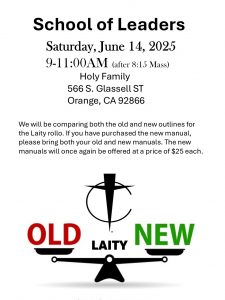 « All Events This event has passed. School of Leaders June 14 @ 9:00 am - 11:00 am « May Palanca Reminder Palanca Reminder » Add to calendar Google Calendar iCalendar Outlook 365 Outlook Live Details Date: June 14 Time: 9:00 am - 11:00 am Event Category: School of Leaders Venue Holy Family 566 South Glassell St. Orange, CA 92866 United States + Google Map