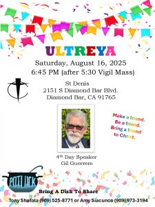 « All Events This event has passed. St Denis Ultreya August 16 @ 6:45 pm - 9:00 pm « Tri-Parish Ultreya-St Joseph (Placentia), St Angela Merici, St Martin De Porres School of Leaders » Add to calendar Google Calendar iCalendar Outlook 365 Outlook Live Details Date: August 16 Time: 6:45 pm - 9:00 pm Event Category: Ultreya Venue St. Denis 2151 S. Diamond Bar Blvd. Diamond Bar, CA 91765 United States + Google Map