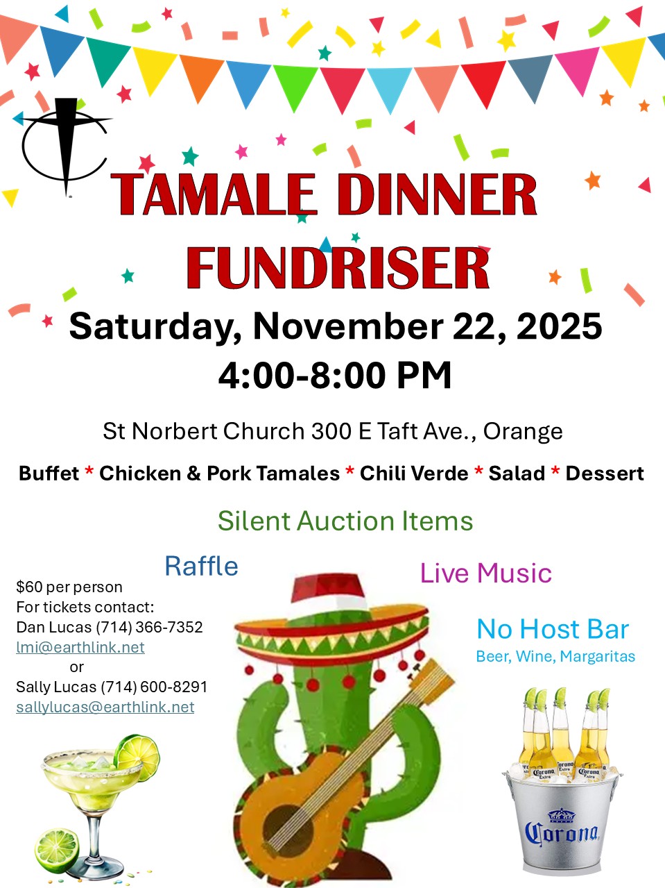 « All Events This event has passed. Tamale Dinner Fundraiser November 22 @ 4:00 pm - 8:00 pm « San Antonio De Padua Ultreya Men’s Cursillo #735 » Add to calendar Google Calendar iCalendar Outlook 365 Outlook Live Details Date: November 22 Time: 4:00 pm - 8:00 pm Venue St. Norbert 300 E. Taft Ave Orange, CA United States + Google Map