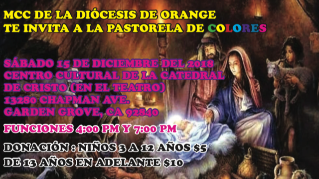 Please help out our Spanish brothers and sisters by attending this upcoming fundraiser. A Pastorela is a reenactment of the Christmas story. The fundraiser is on Saturday December 15th.